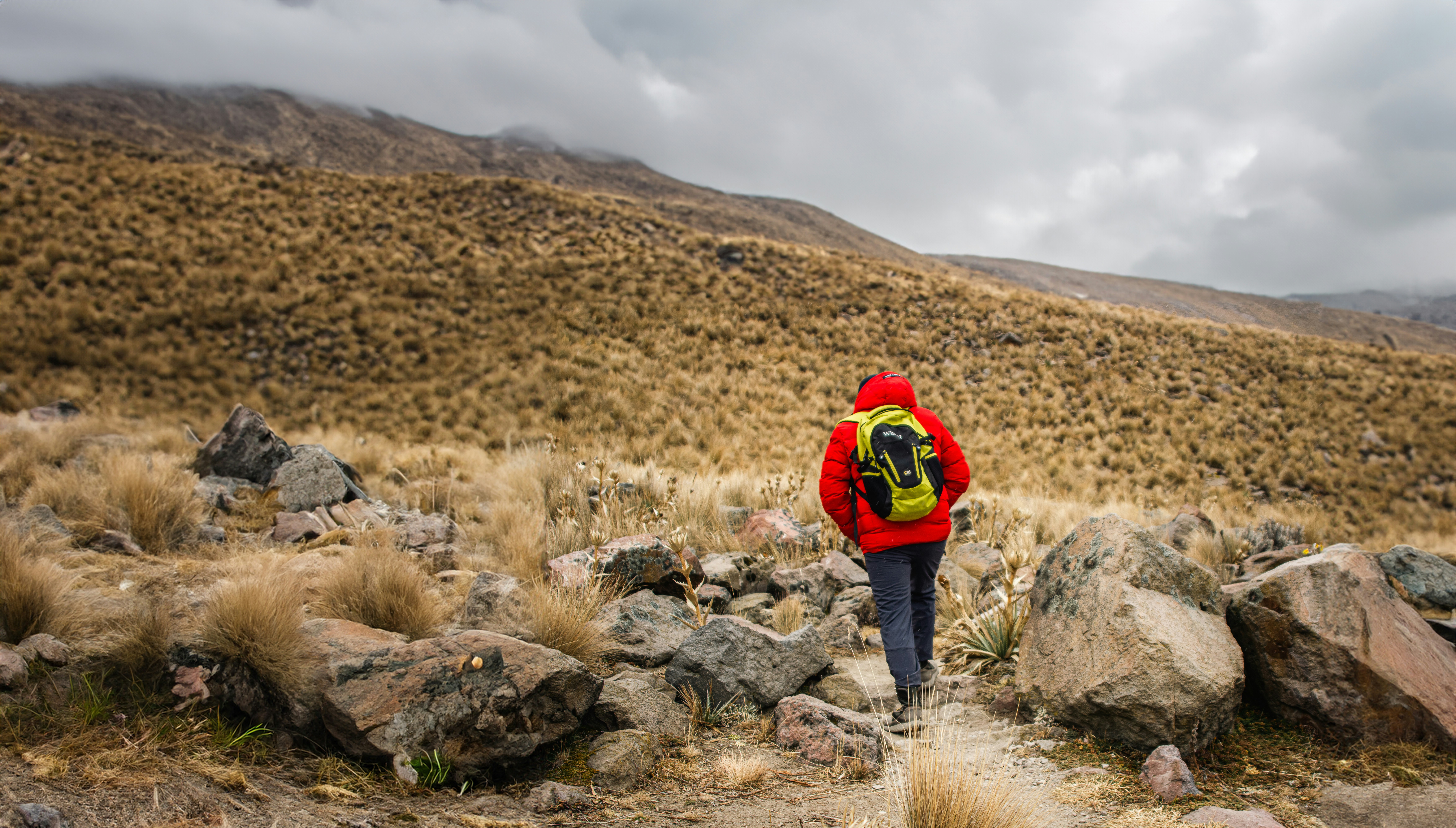 The route continues with a pleasant two-kilometer walk, descending into the crater and ascending a moderate sandy slope to reach 14,435 ft (4,400 m). The final section includes some light scrambling along the crater rim, offering spectacular views, before reaching the Pico del Fraile summit at 15,387 ft (4,680 m).